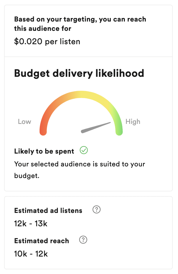 The limited budgeting options does make it hard to test different audiences and ad creatives at the same time, though this simplicity may be why running ads on Spotify is attractive.